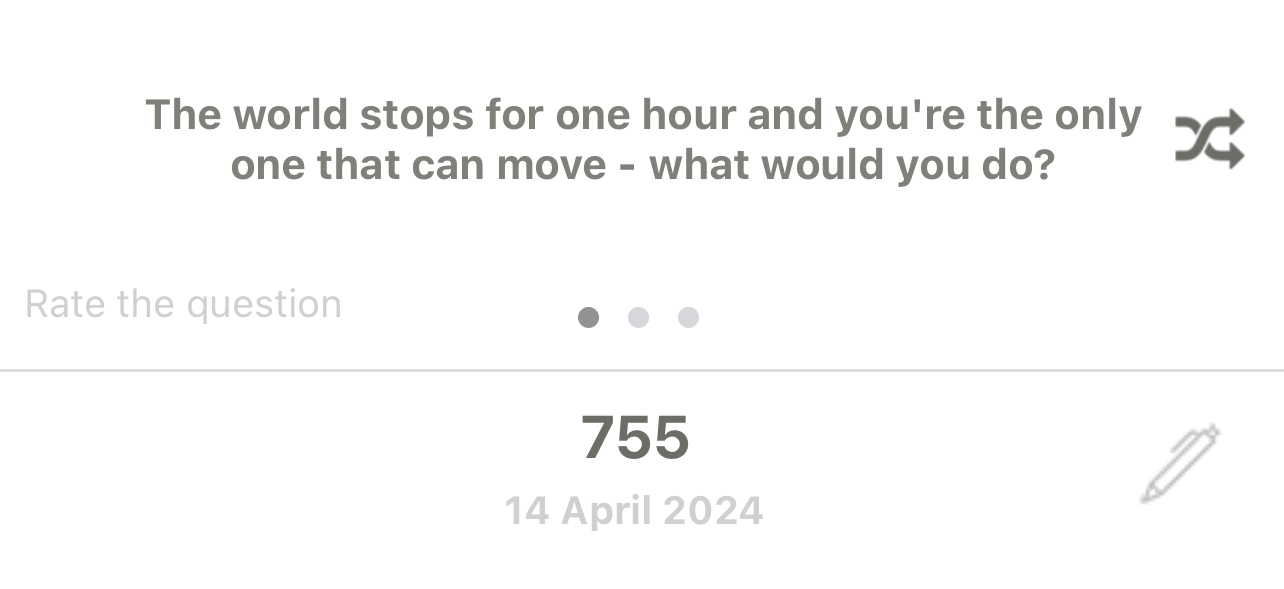 | Question Diary 240415MON: Q756 (0) | 2024.04.16 |