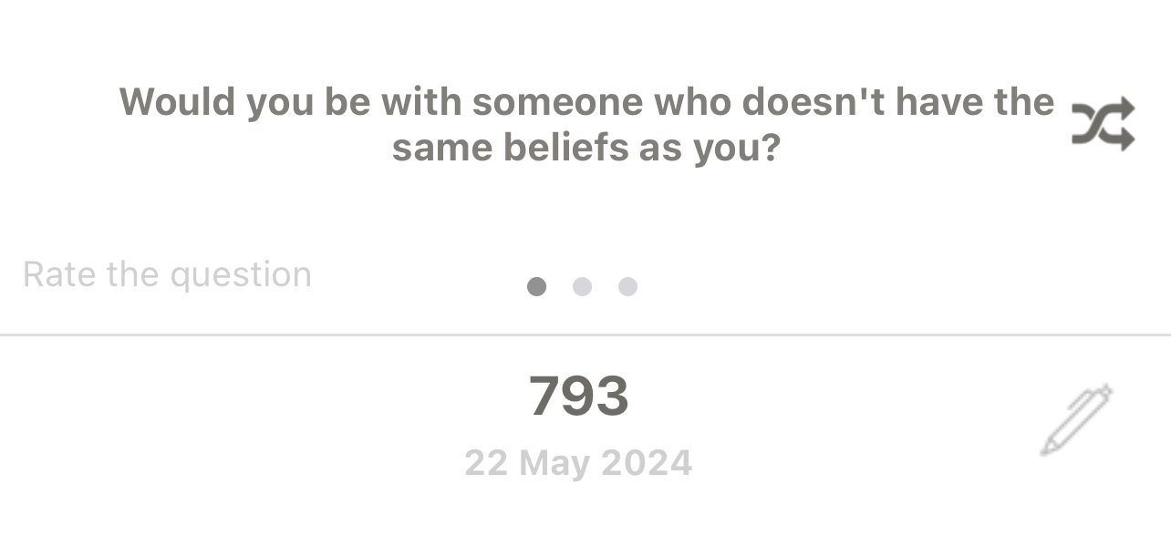 Would you be with someone who doesn't have the same beliefs as you?