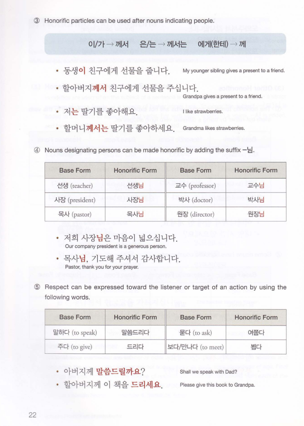 4. Nouns designating persons can be made honorific by adding the suffix -님.