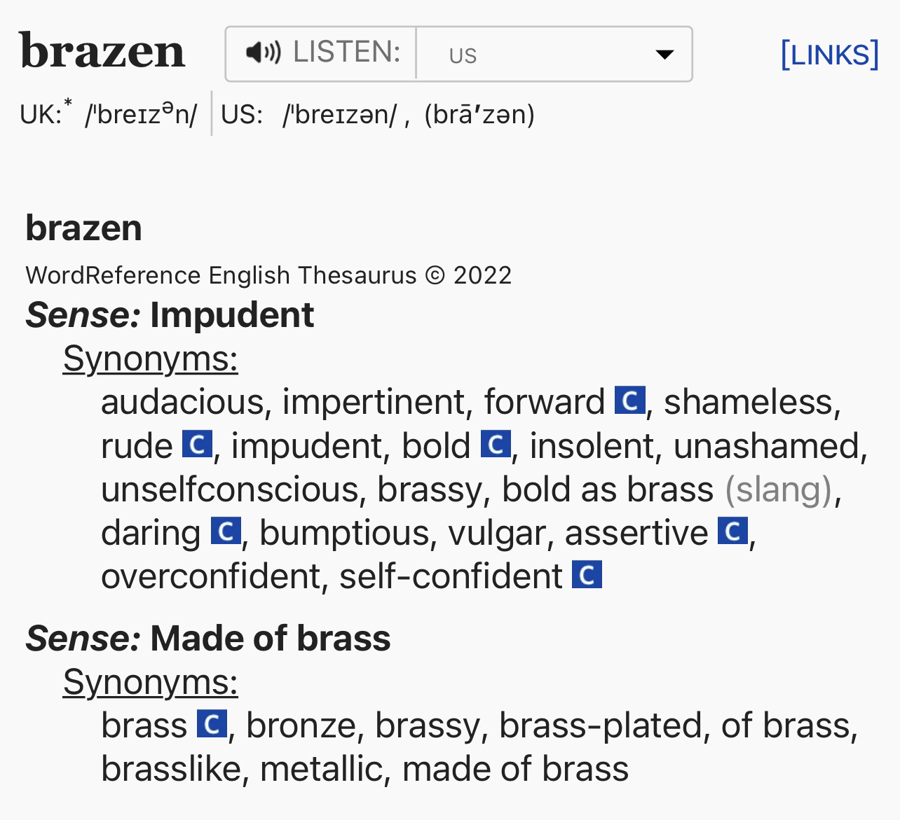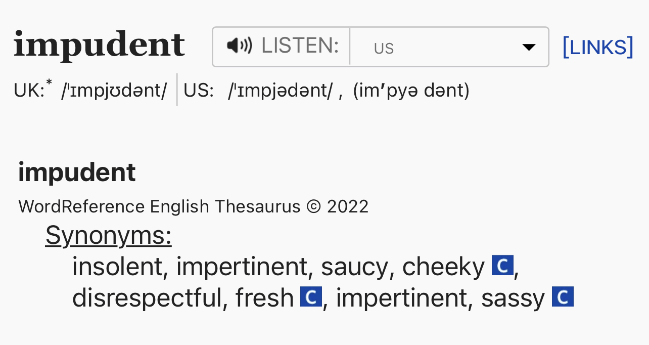 + 유용하게 정말 잘 쓰고 있는 Word Reference 링크. https://www.wordreference.com/synonyms/impudent